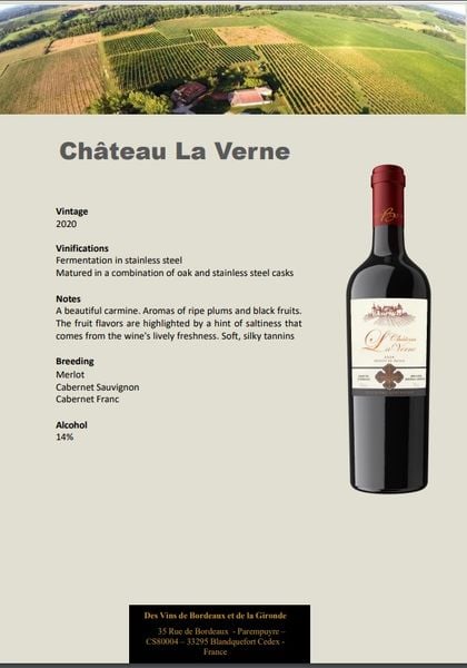 Vang đỏ Pháp Chateau La Verne, Bordeaux, Blend, 2020
