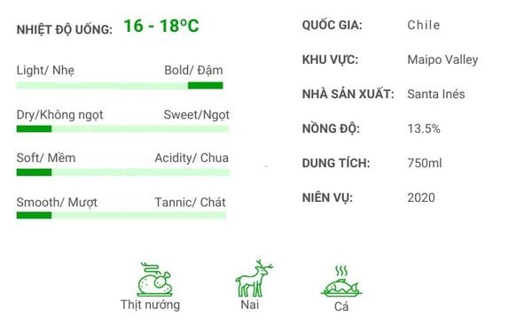 - Nhà sản xuất: Santa Inés - Giống nho: Cabernet Sauvignon
