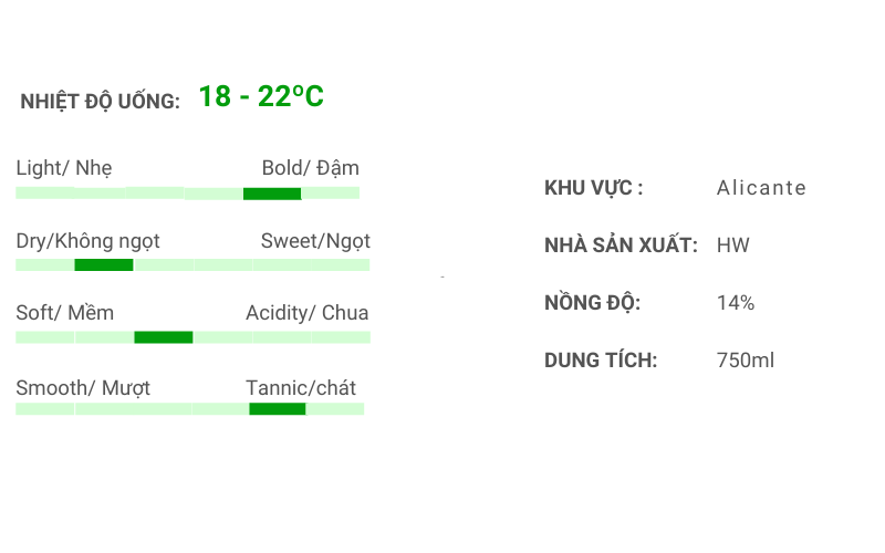 Vang đỏ Tây Ban Nha, H Series, Alicante, Monastrell