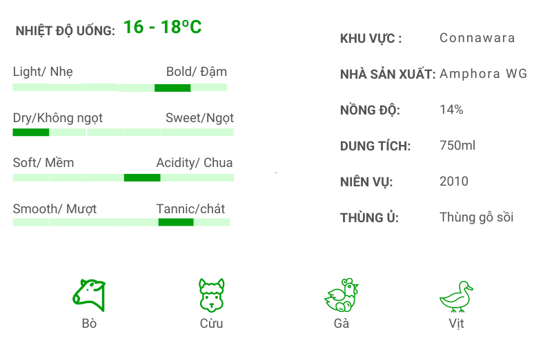 - Nhà sản xuất: Amphora Wine Group - Giống nho: Cabernet Sauvignon